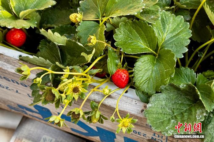 12月15日,农创客映现的培养草莓少势优良。中新社记者 董易鑫 摄